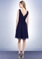 Chiffon dress with a V-front and back. Pleats adorn the bodice with a ruched cummerbund at the natural waist. Soft gathers embellish the skirt with overlay draped effect.