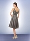 European Satin cocktail dress with front and back V-neck. Ruched cummerbund accents the natural waist. Full A-line swing skirt with side pockets.