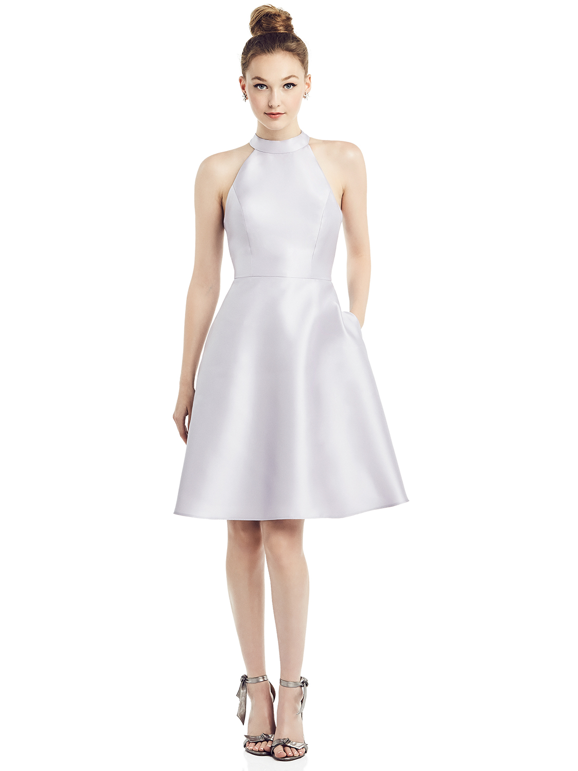 Alfred Sung Bridesmaids 2020 - D773 - Open-Back High-Neck Satin Cocktail Dress Gown