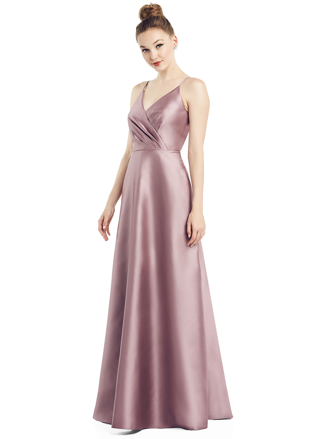 Alfred Sung Bridesmaids 2020 - D776 - Draped Surplice Bodice Satin Gown with Pockets Gown
