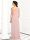 Full length one shoulder nu-georgette dress w/ draped bodice and draped skirt.