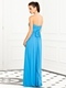 Full length strapless lux chiffon dress w/ shirred bodice and matching sewn in sash at empire waist. Slight shirring at skirt. Available as junior style JR519.