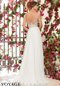 The supreme finishing touches on this stylish gown from the Mori Lee Bridal Collection makes it a fantastic choice for your big day. A sheer bateau neckline leads to dainty cap sleeves embellished with crystal beaded embroidery along the straps. This frames a sweetheart bodice that arcs along the bust naturally and dips in the center to create a fabulous illusion. The entire bodice is dusted with scintillating elements that extend towards a striking waistband. Here the embellishments grow thicker and more ornate. The shimmering bodice contrasts beautifully with the supple layers of the chiffon A-line skirt which flows to full length, softly sweeping the floor. At the back, a simple but elegant sheer V closes in a dreamy train of satin buttons travelling to the derriere. More rhinestones and metallic embroidery adorn the waist and the splendid gown culminates in a delicate chapel train.