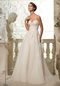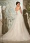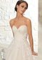 Watch your prince charming fall in love with you all over again, as you make your way to the marital altar in this fantastic tulle ball gown from the Mori Lee Bridal Collection. The sculpted sweetheart neckline gently arcs over the natural curves of your bust and gentle ruchings in tulle add a delicate touch to the bodice. Spectacular floral embroidery embellished with crystal beading crosses from the gentle dip of the bodice to one side and sprawls down to further spread across the waist. More dainty clusters of floral appliques embellished with shimmering accents scatter over the divine ball gown skirt. At the back, the gentle ruchings close in a strand of fabric buttons and the dainty floral appliques form clusters that scatter throughout the skirt and ample cathedral train.