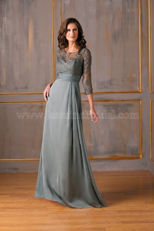 An elegant and sophisticated gown for your next special occasion. This Tiffany chiffon dres has a classic scoop neckline and A-line skirt, with a beautiful layer of lace over the bodice and ruching on the belt and skirt that set this dress apart.