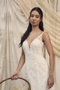 At the heart of this "Water's Edge" collection stands a gown that seeks to enchant with every detail, style BL467 Lyla. This sheath silhouette features a plunging V-neckline supported by lace tank straps and low-cut back. Her bodice is constructed with 10-point boning to highlight the bride's feminine curves. Crafted from stretch lining and tulle, this gown is decorated in 3D lace appliqués from top to hemline. Lyla's skirt sways elegantly with every step trailing an impressive 80-inch illusion train behind her. Complete this stunning ensemble with her sassy shoulder-length veil, style BL4467V, offered separately. Lyla invites peaceful contemplation before your wedding celebration.