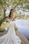 The water's edge sparkles as if sprinkled with fairy dust, adding a magical, serene glow to the BL475 Saphira wedding gown. Featuring a fitted, mermaid silhouette with a plunging V-neckline in the front, 'Saphira's' delicate spaghetti straps run over her shoulder and into a crossed back for extra support and lift. She is crafted from stretch lining and tulle with beaded lace trickling down the bodice, waist, and stopping just above the knee before spanning out in an impressive 82-inch tulle train. 'Saphira' is a fairytale wedding gown, complete with her matching cathedral veil, BL475V, offered separately.