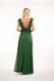 Charlotte chiffon long bridesmaid dress with bateau neckline, ruffled V-neck design, ruffle deep V back and A-line skirt.