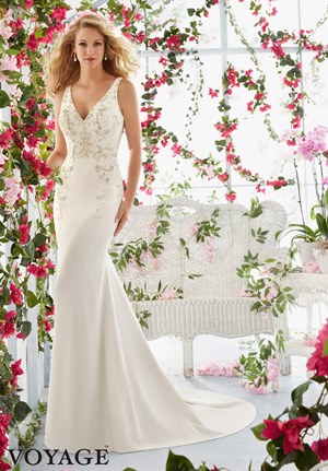 Mori Lee Voyage SPRING 2016 Collection: 6811 - Diamante and Pearl Beading on Lush Crepe Gown
