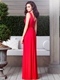 Full length sleeveless lux chiffon dress w/ draped v-neck and shirred detail skirt front and back.