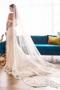 Inspire your beloved in this dreamy mermaid gown crafted from soft tulle and delicate lace applique. A flattering sweetheart neckline tastefully highlights the decolletage and is complemented by lace applique draped straps. The illusion semi-sheer corsetted bodice cinches the waist, while a sultry thigh split adds a touch of seduction. A magnificent cathedral train and a matching scalloped veil complete this exquisite bridal style. Matching veil MT5103VEIL sold seperately.