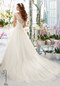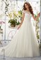 Mori Lee Blue SPRING 2016 Collection: 5403 - Embroidered Lace Overlays the Bateau Bodice on the Soft Net Ball Gown Gown