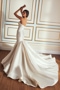 Make a stylish statement in this beautifully feminine trumpet gown. Thoughtfully crafted from luxurious Mikado, this chic style features a flattering sweetheart neckline and a softly structured bodice with pleat detailing. Elegant covered buttons and a spectacular cathedral train ensure a breathtaking view from every angle.