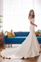 Make an elegant statement in this stylish trumpet gown. Thoughtfully crafted from sumptuous Mikado, this stunning style features a curved neckline and elegant draped sleeves. The softly structured bodice features flattering ruched detailing to accentuate the waist, whilst the breathtaking cathedral train, complete with delicate covered button, adds a touch of refined drama.