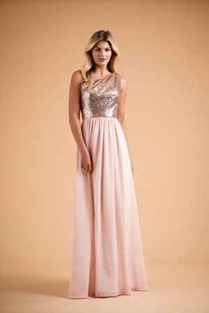 B2 SPRING 2020 - B223014 - Sequin and poly chiffon long bridesmaid dress with sequin top Gown