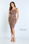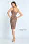 Short version of 221965. Timeless beaded sheath evening gown with a scoop neckline, v-back, sweep train, and a detachable belt. Shawl, three-quarter sleeves, beaded belt, and ribbon belt included.