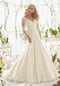 Mori Lee Bridal SPRING 2016 Collection: 2812 - Alencon Lace Appliques on Net Frosted with Delicate Beading and Scalloped Hemline Gown