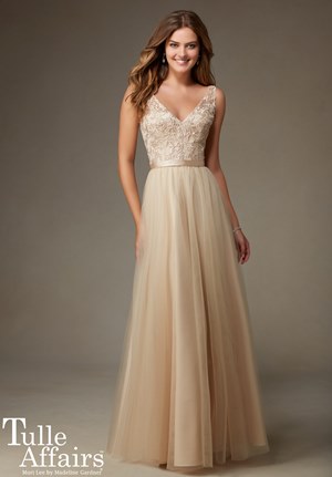 Mori Lee Tulle AFFAIRS SPRING 2016 Collection: 134 - Tulle with Embroidery and Beading with Satin Waistband Gown