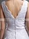 This slim and sexy silhouette is created from an all-over lace applique with a ruched satin band defining the natural waist. The v-neckline and v-shaped back.