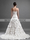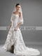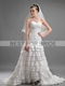 This taffeta A-line silhouette evokes your sense of fantasy. Gathered frills create playful tiers that descend down the skirt with a slit. Beaded lace applique embellished the entire bodice, Sweetheart neckline finished with corset closure.
