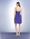Chiffon strapless short dress with a sweetheart neckline. Criss-cross ruching and pleats adorn the bodice. Lace back corset with modesty piece. Inverted front pleats accent the skirt.