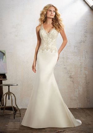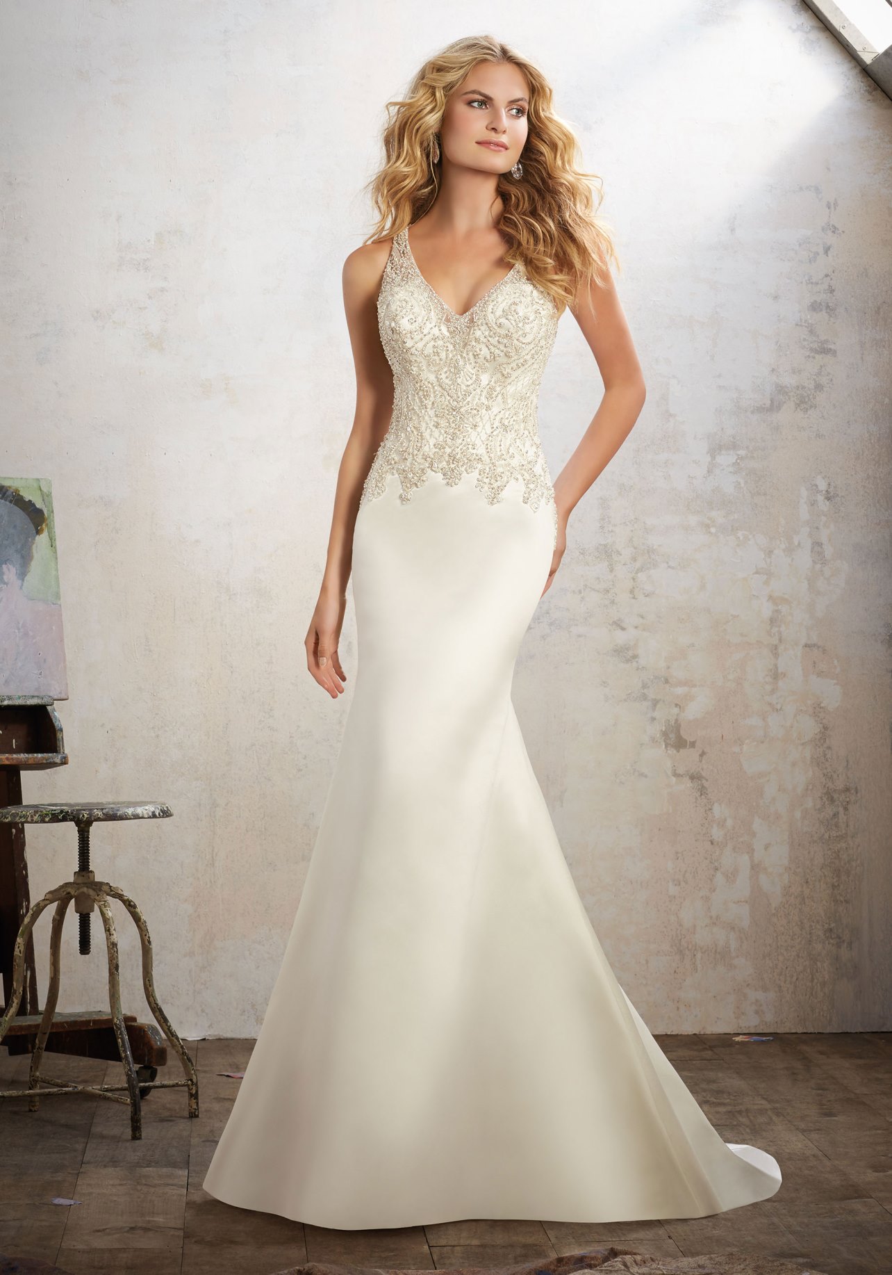 Mori Lee Bridal SPRING 2017 Collection: 8121 - Maria - Diamanté Beaded Embroidery on Duchess Satin with Chandelier Back Straps Gown