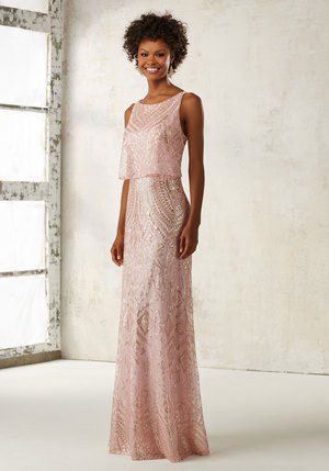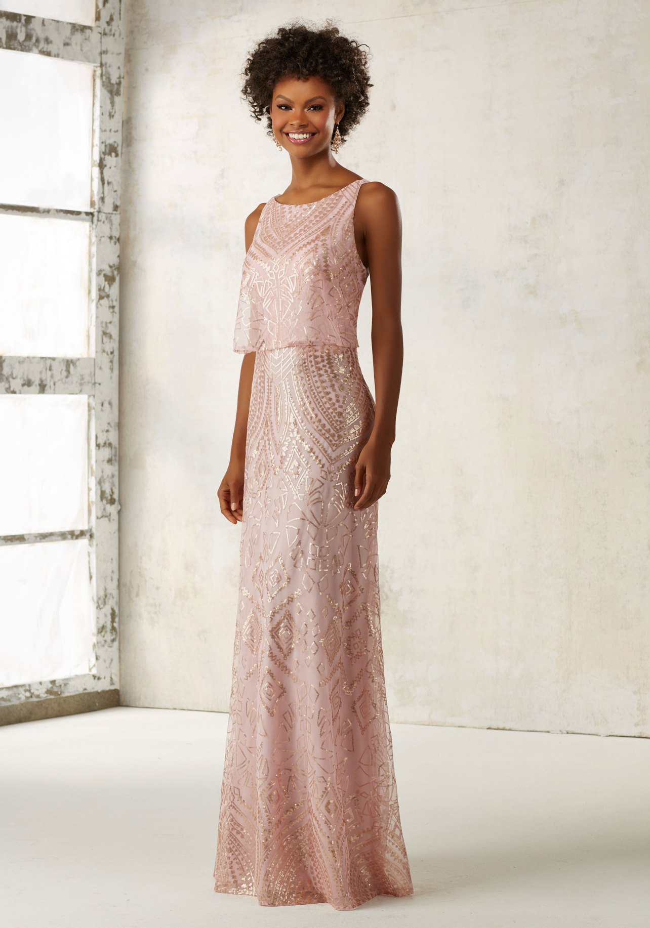 Mori Lee BRIDESMAIDS SPRING 2017 Collection: 21514 - Pattern Sequins on Mesh Gown