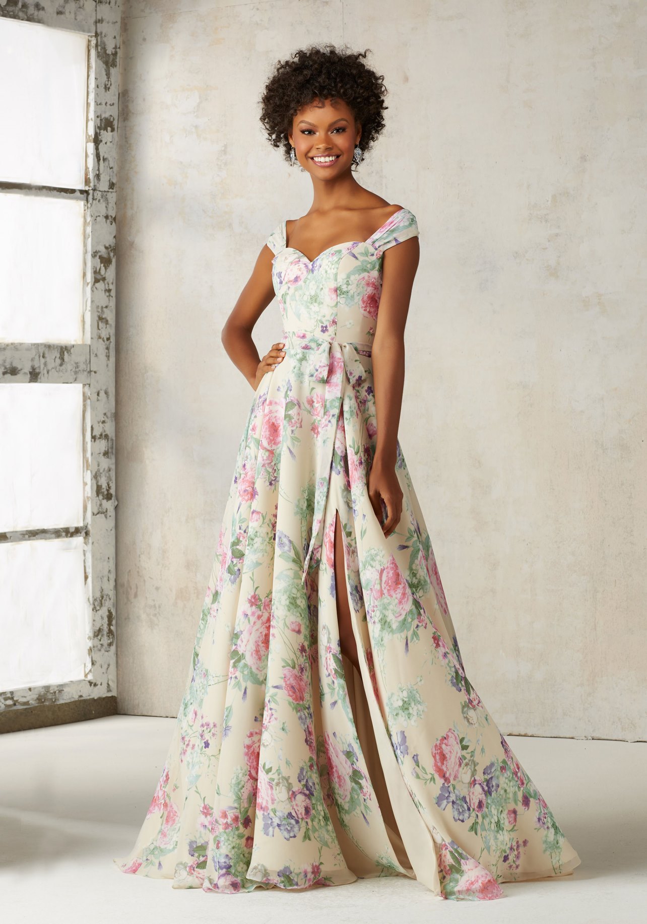 Mori Lee BRIDESMAIDS SPRING 2017 Collection: 21528 - Solid or Printed Chiffon Gown