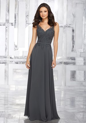 Mori Lee BRIDESMAIDS FALL 2017 Collection: 21544 - Chiffon Bridesmaids Dress with Embroidered Beaded Bodice Gown