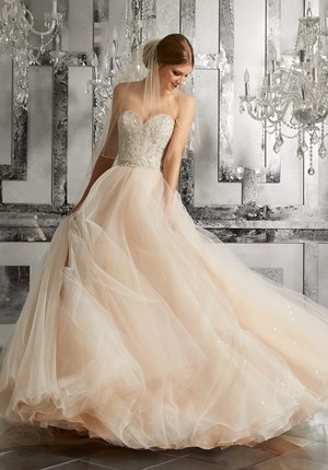 Mori Lee Bridal FALL 2017 Collection: 8175 - Mystique - Diamanté and Crystal Beading on Allover Embroidered Bodice with Tulle Over Sequined Net Skirt Gown