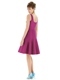 Cocktail length sleeveless peau de soie dress with scoop neckline and inset waistband at natural waist. Seamed flared skirt.