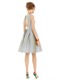 Cocktail length sleeveless dupioni dress with inset midriff and open back detail. Pockets at side seams of full pleated skirt. Sizes available: 00-30W, and 00-30W extra length.