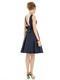 Cocktail length sleeveless dupioni dress with bateau neck and inset midriff. Open back with bow detail at back waist. Modified circle skirt with inverted pleat detail at center back. Pockets at side seams of skirt. Sizes available: 00-30W, and 00-30W extra length.