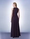 Chiffon sleeveless gown with vertical pleats that adorn the front and back of the bodice with a wide ruched cummerbund. Gathers surround the skirt giving it extra fullness.
